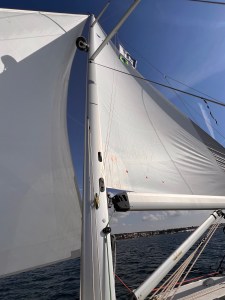 The sails are as new. The boat with a clean hull is doing greatly. We are really enjoying the day and the company. We are so excited because everything looks great. Bruna and Sinisa are testing and photographing everything. Jure is skipping. We resist the temptation to be at the wheel, just in case something happened …