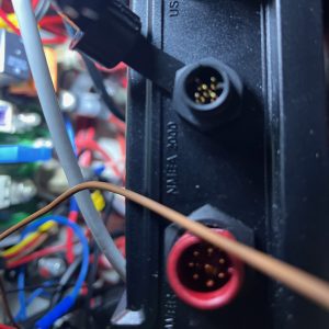 Because it is now raining once again, I go back inside and I start the installation of the AIS transponder. The task is not difficult, but there are issues. The first issue is finding the right place. I need to be very creative because that compartment is already fully stuffed with motherboards, switches, and other devices. The second issue is finding the NMEA2000 backbone.