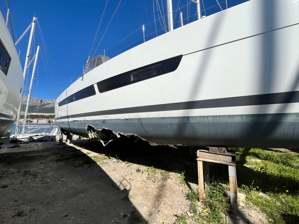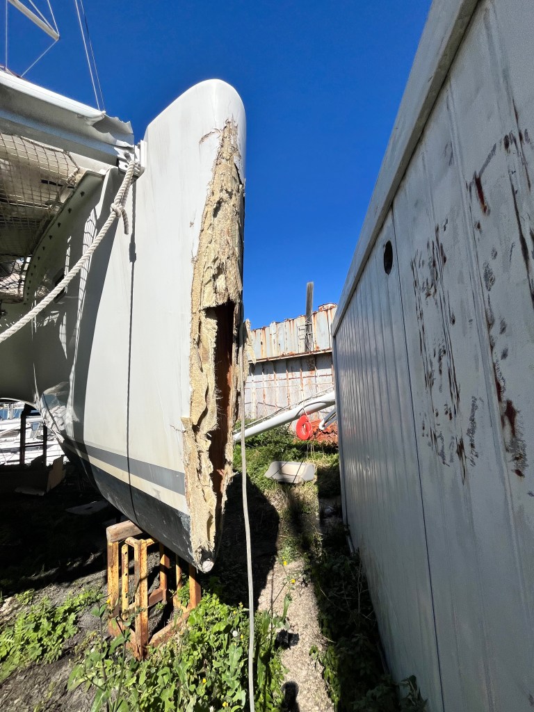 While at the shipyard I saw several heavily damaged boats, especially catamarans.