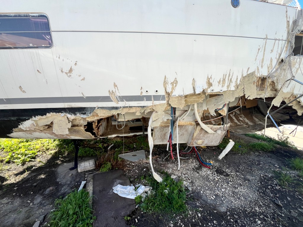 Interesting fact: these boats are bought and repaired by people who will sell them on the market. They will look fine, but how much can you trust a boat that has been damaged to such extent?