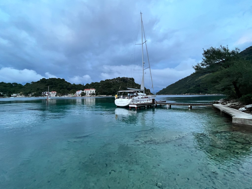Luka Okuklje is an amazing small bay, with a narrow entrance, and offers protection in all wind conditions. It is possible to anchor, but also to find a dock at one of the Konobas. The water is crystal clear, and the vegetation is lush.